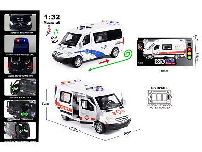 俄文1:32压铸锌合金灯光音效奔驰斯宾公安/救护车车模