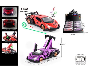 俄文1:32压铸锌合金灯光音效兰博基尼毒药车模 8只/展示盒