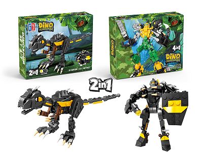 益智侏罗纪恐龙积木弹射变形霸王龙金刚(161PCS)可4款混装