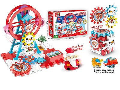 圣诞节惯性圣诞老人摩天轮乐园会旋转的齿轮联动积木科教益智拼装玩具(电动)45pcs