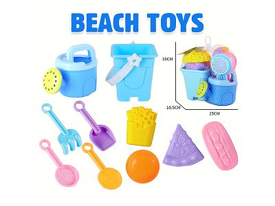 沙滩玩具城堡桶花洒沙铲工具汉堡薯条沙模10PCS