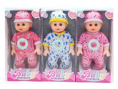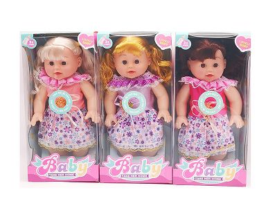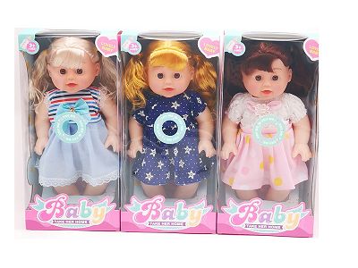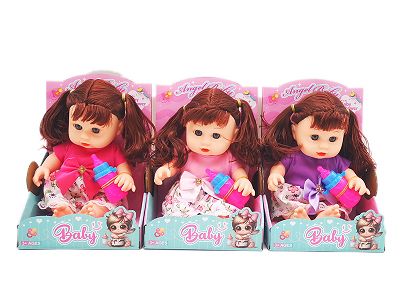 10寸全身搪胶弯脚娃娃 带音乐IC+奶瓶 3款混