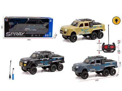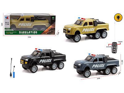 1:16六轮路虎越野皮卡二通带灯光遥控警车包电(车身包3.7V锂电+USB线,遥控器二粒5号电池不包)
