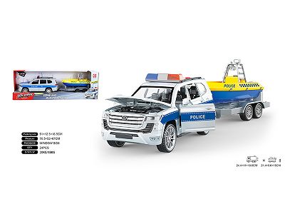 产品名称: 1:16警车灰-四开门拖快艇惯性,灯光,声音,开门