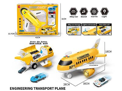 卡通收纳工程声光飞机配3只合金小跑车 随机