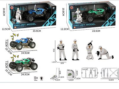 小号合金惯性灯光越野跑车+维修工人+工具