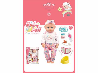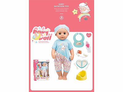 16寸喝水撒尿公仔连配件(头手脚搪胶身体吹气带IC,24声)