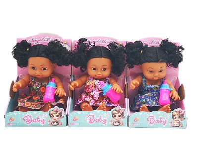 10寸全身搪胶黑人弯脚娃娃 带音乐IC+奶瓶 3款混