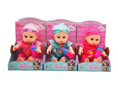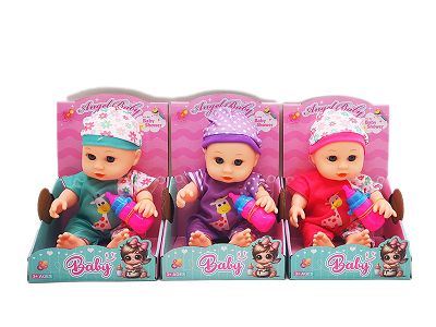 10寸全身搪胶弯脚娃娃 带音乐IC+奶瓶 3款混