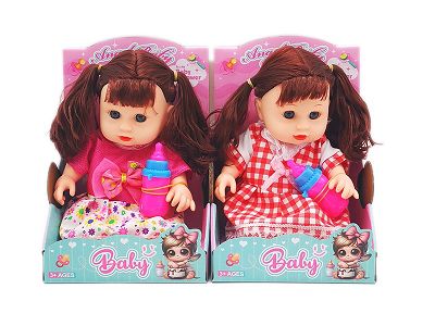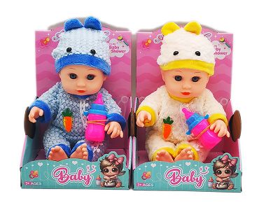 10寸全身搪胶弯脚娃娃 带音乐IC+奶瓶 2款混