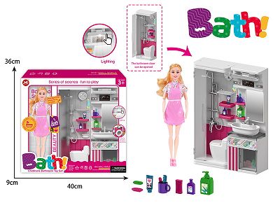 浴室过家家玩具-芭比+淋浴间+洗脸台+洗衣柜