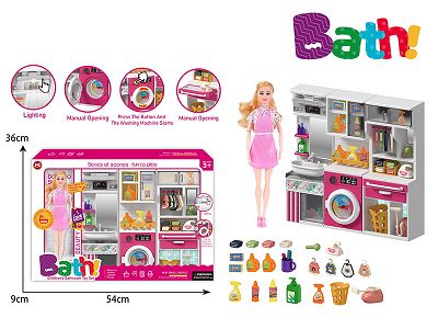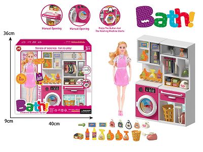 浴室过家家玩具-芭比+洗衣柜+熨衣板