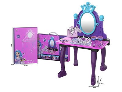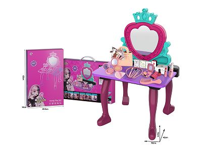 过家家梳妆台玩具套装带桌腿/抽屉(仿真彩妆玩具+彩妆工具+发箍+贴钻+小擦布)