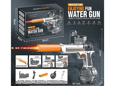 实色沙鹰联动二代喷火版电动水枪(内置锂电池+数据线+1个弹鼓+1个 消声器)