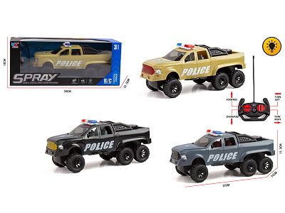 1:16六轮丰田越野皮卡四通带灯光备胎遥控警车不包电(车身使用四粒5号电池,遥控器二粒5号电池)