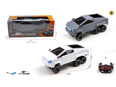 1:16六轮狂野概念皮卡车斗带跑马七彩灯光特斯拉四通遥控车包电