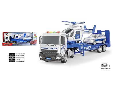 1:18警车平板拖直升机/警车惯性,灯光,声音