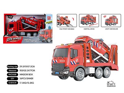 1:18消防平板拖直升机/警车惯性,灯光,声音