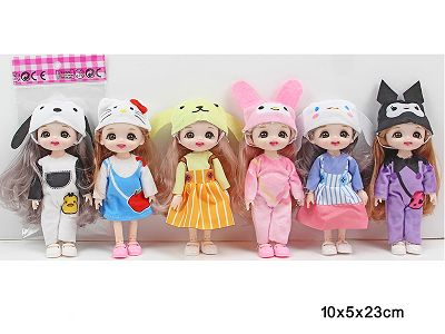 6寸13关节实身3D真眼时尚萝莉娃娃单只戴头饰6款混