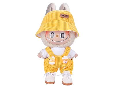 17CM 一二代坐坐派对labubU休闲渔夫帽内衣吊裤套装娃衣拉布布