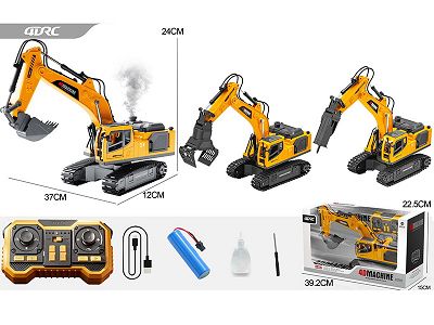 14通合金喷雾履带挖掘机三合一(黄色)(1:18)包电
