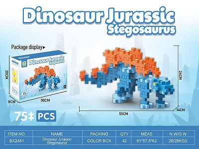 非乐高式吹塑PE积木剑龙积木(STEGOSAURUS)75PCS 益智积木拼装积木大颗粒积木拼插积木恐龙积木