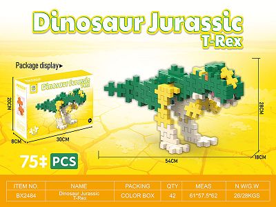 非乐高式吹塑PE积木霸王龙积木(T-REX)75PCS 益智积木拼装积木大颗粒积木拼插积木恐龙积木