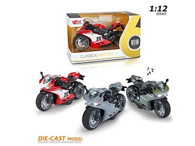 1:12 合金回力杜卡迪摩托车带灯光音乐3色混装