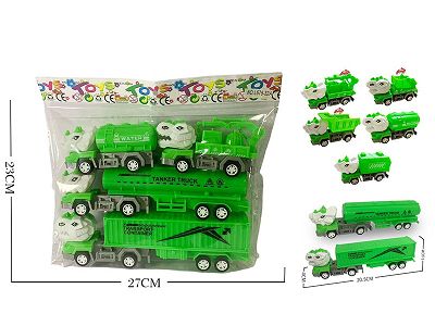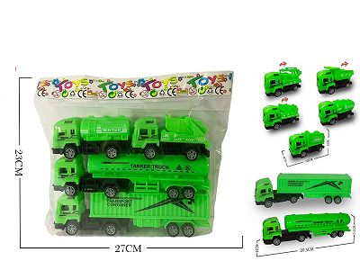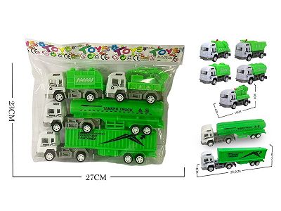 4只回力货柜车油罐车环卫车(白色头)