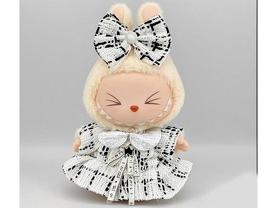 一二代拉布布labubu坐坐派对挂件25cm娃衣搪胶公仔甜美香香风裙子
