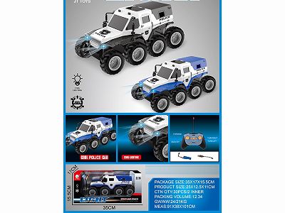 八轮灯光遥控警车 白间蓝/白间黑2色混装 1:14(包)车身3.7V充电锂电池、USB线、遥控器(2AA不包)4通
