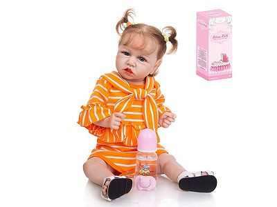 58cm重生娃娃软胶高仿真婴儿娃娃(普通PP车发)带奶瓶,磁性奶嘴,尿布,出生卡