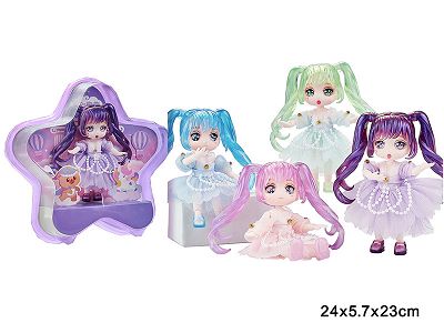 6寸13关节实身3D漫画眼星星盒时尚卡通萝莉娃娃单只4款混