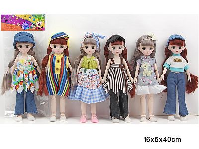 12寸21关节实身3D真眼时尚卡通萝莉娃娃单只+头饰6款混