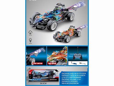 七彩喷镀灯光F1遥控车 七彩红/七彩蓝2色混装 1:14(包)车身3.7V充电锂电池、USB线、加水瓶、遥控器(2AA不包)5通