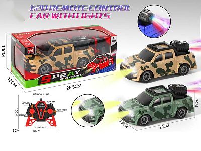 2.4G带车前灯,灯光喷雾5通遥控迷彩军事皮卡车 (配抽水瓶)