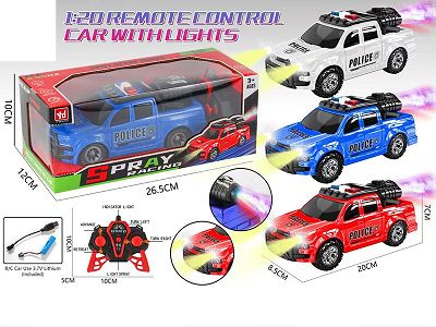 2.4G带车前灯,灯光喷雾5通遥控皮卡警车 (配3.7v锂电池+USB线+抽水瓶)