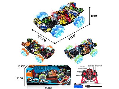 2.4G明轮灯光七通遥控涂鸦侧行特技赛车(包充电)