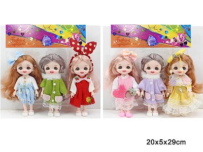 6寸13关节实身3D真眼时尚萝莉娃娃戴头饰3只2款混