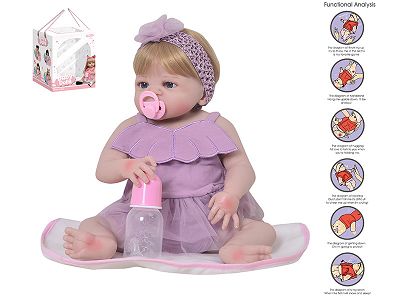 56cm重生娃娃高仿真婴儿娃娃(假发套)带奶瓶,磁性奶嘴,尿布,出生卡,带重力感应发声功能