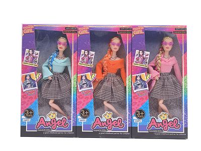11.5寸十一关节实身金丝长辫时尚芭比 带眼镜+项链 3款混