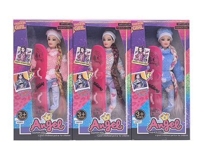 11.5寸十一关节实身长辫时尚芭比 带滑雪板 3款混