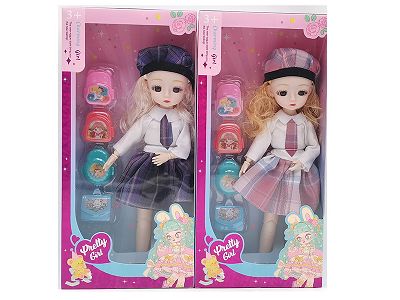 12寸多关节实身3D眼瞳时尚娃娃 带小书包吸塑 2款混