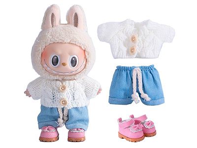 15cm挂件拉布布衣服针织毛线衣带牛仔裤替换装鞋子钥匙扣搪胶公仔