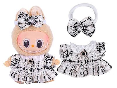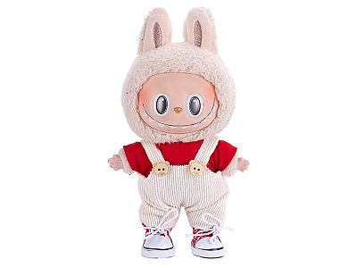 仅衣服 一二三代Labubu衣服挂件拉布布坐坐娃衣8字格纹背带裤套装