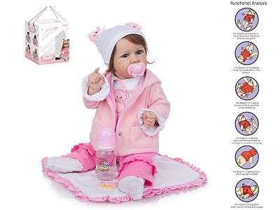 58cm重生娃娃高仿真婴儿娃娃(仿真胎毛)带奶瓶,磁性奶嘴,尿布,出生卡,带重力感应发声功能