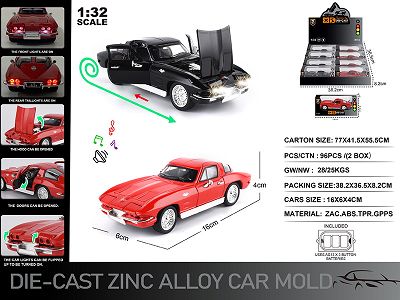 英文1:32压铸锌合金灯光音效克尔维特 车模 8只/展示盒
