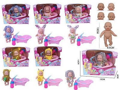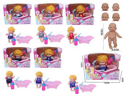 5寸搪胶表情娃娃+浴池(6款混装)