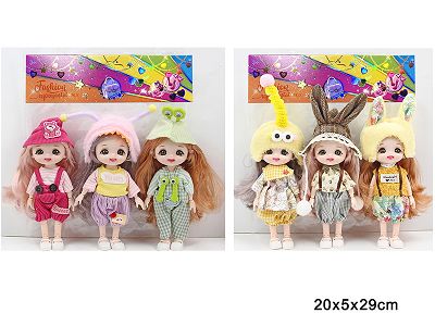 6寸13关节实身3D真眼时尚萝莉娃娃戴头饰3只2款混