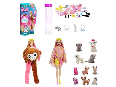 高档惊喜11.5寸12关节实身彩虹猴萌宠芭比带1套动物毛绒时装衣服。带发夹,手提包,鞋子。项链4款配件。另外带一只随机小动物有2套衣服